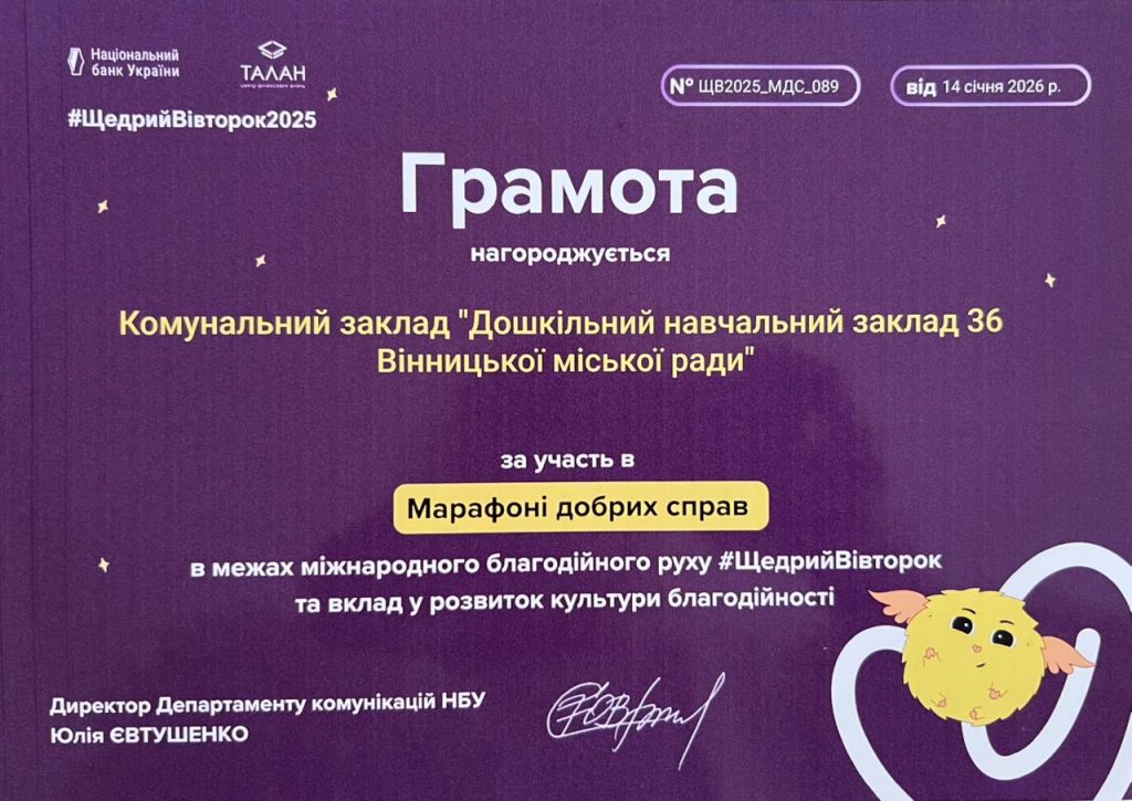 Протягом грудня 2025 на запрошення Національного банку України  наш заклад долучився до Марафону добрих справ,  метою якого було підвищення культури благодійності серед молодого покоління.