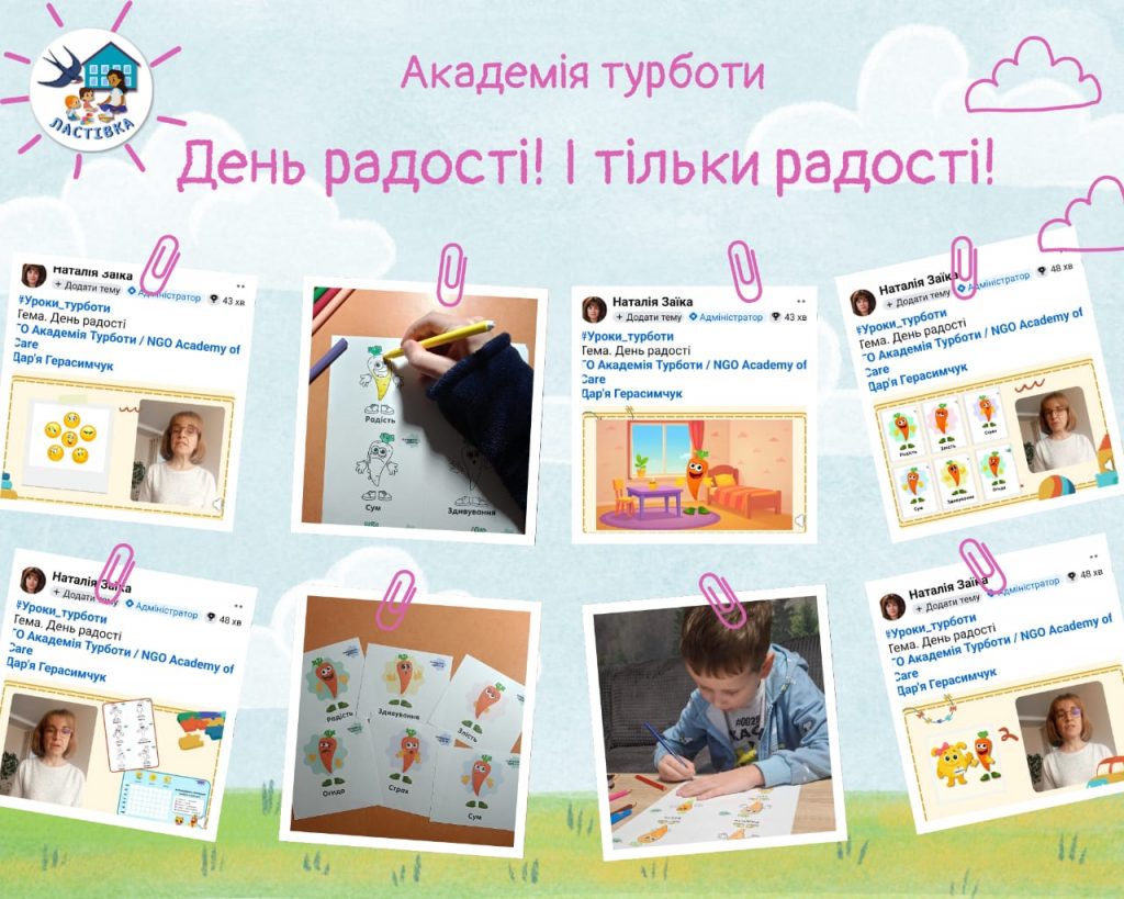Наш заклад долучився до всеукраїнської ініціативи від ГО “Академія Турботи” разом з офісом Радниці-уповноваженої Президента України з прав дитини та дитячої реабілітації Дар’ї Герасимчук та за підтримки Міністерство освіти і науки України. Вже проведено перший урок “День радості! І тільки радості!”. Діти поринули у чарівний світ разом з Морквинкою і дізналися, що кожна емоція важлива і має свою силу. Долучайтеся і ви! Далі буде …