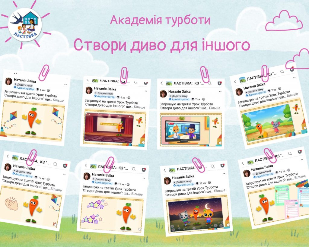 Відбувся третій Урок Турботи “Створи диво для іншого”: щедрий вівторок та культура благодійності. Це історія, де діти разом з Морквинкою досліджували, що таке небайдужість та як маленькі добрі вчинки можуть стати дивом для когось поруч. Урок став помічним у розумінні, що допомагати може кожен. Малята навчилися помічати тих, хто потребує підтримки; робити маленькі добрі справи; сприймати благодійність як природний та радісний спосіб робити світ кращим.