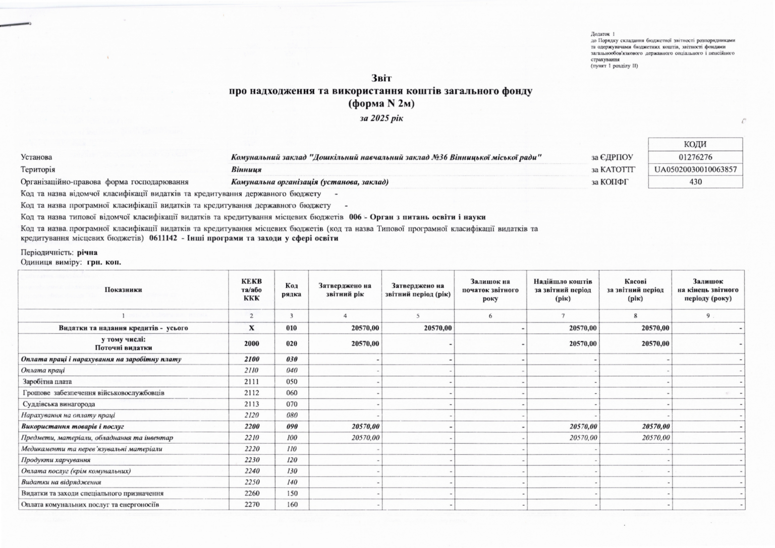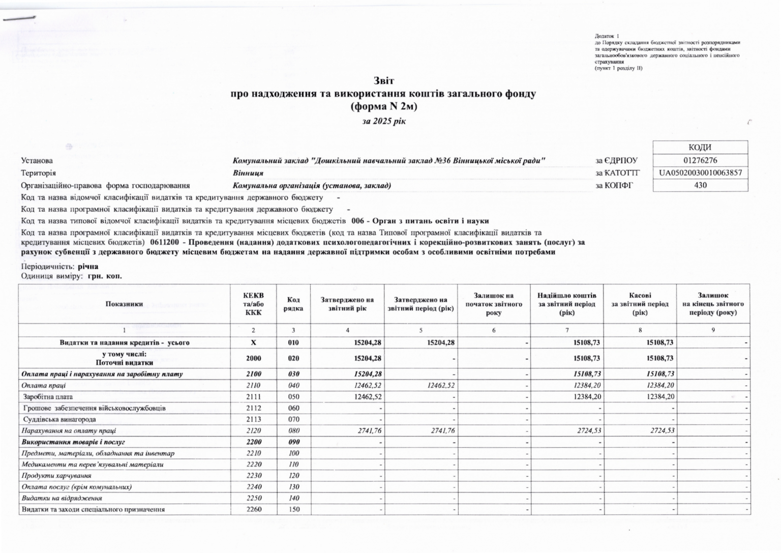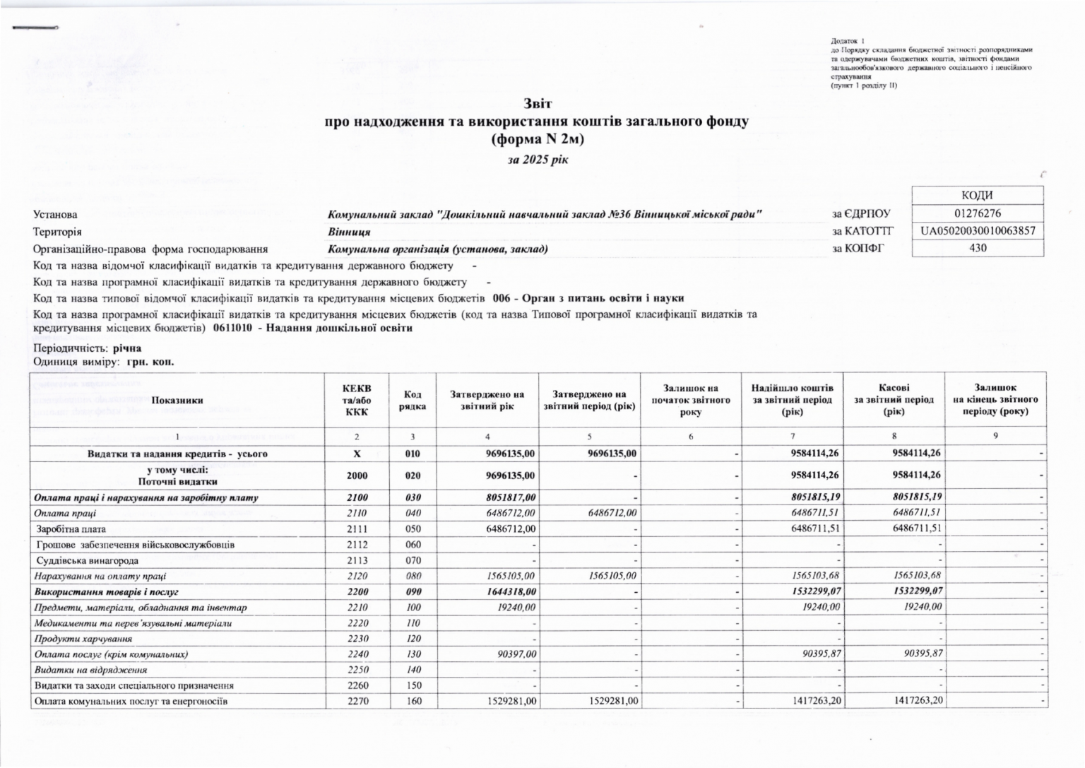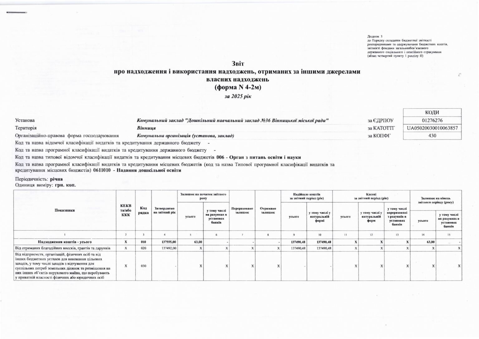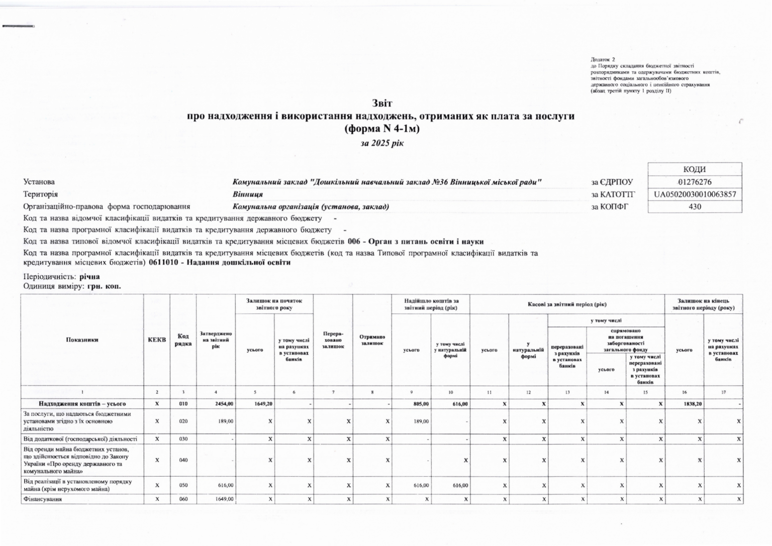 Річний звіт про діяльність закладу